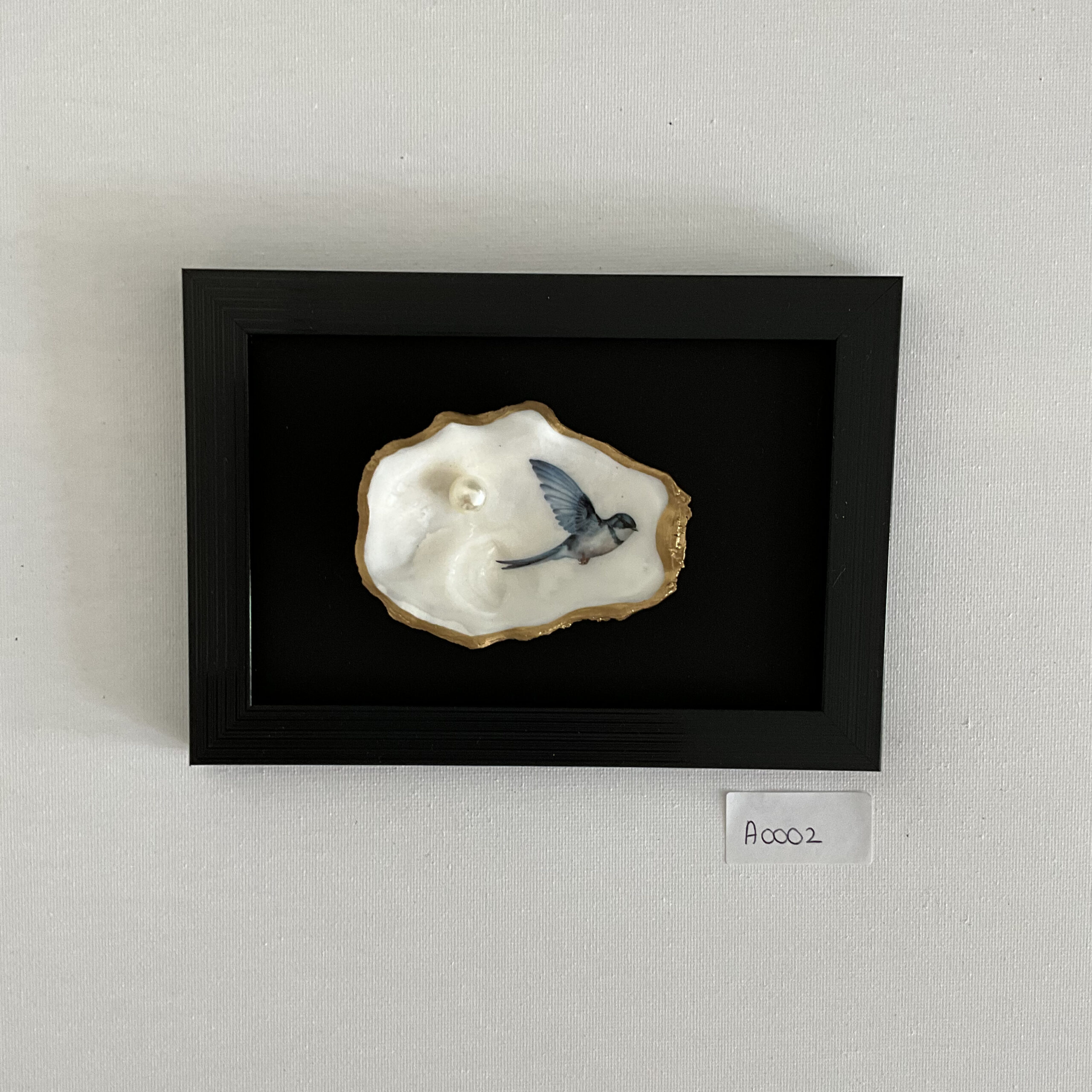 Geef je interieur een vleugje verfijning met onze kleine zwarte lijst met een prachtig beschilderde oesterschelp in het midden.