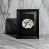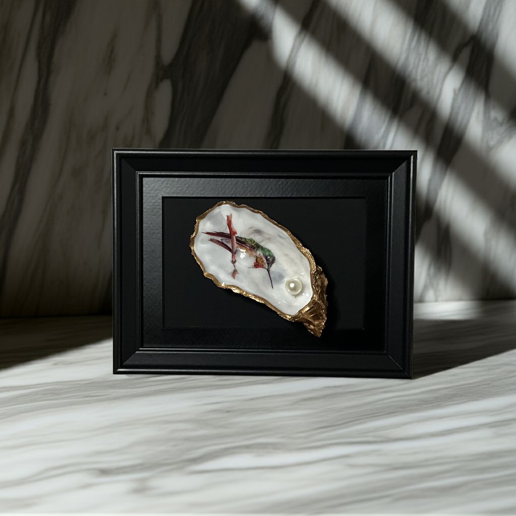 Geef je interieur een vleugje verfijning met onze zwarte lijst met een prachtig beschilderde oesterschelp in het midden.