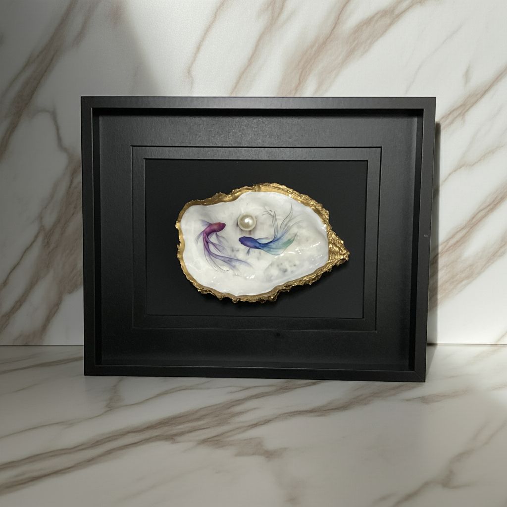 eef je interieur een vleugje verfijning met onze zwarte lijst met een prachtig beschilderde oesterschelp in het midden.